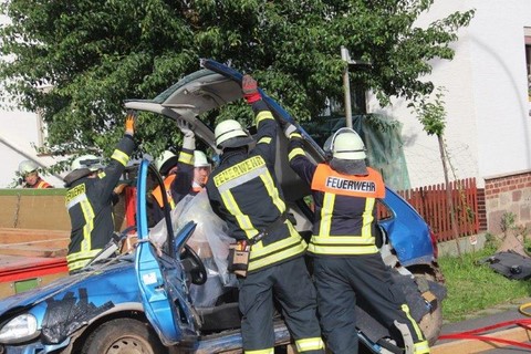 Der Samstag stand ganz im Zeichen der Jugendabteilung. Am frühen Nachmittag wurden die Jugendwettkämpfe durchgeführt. Die Jugendfeuerwehr Gittersdorf-Untergeis belegte dabei den ersten Platz, gefolgt von Raboldshausen 2 und Raboldshausen 1 auf dem dritten Platz. Parallel dazu wurde eine Fahrzeugschau aus "75 Jahren Feuerwehr" präsentiert. Auch die Feuerwehr aus Bad Hersfeld zeigte sich dabei mit großem Löschgerät. Keine Frage, dass dies insbesondere bei den jungen Feuerwehrmännern und -frauen gut ankam. Herbert Pflanz demonstrierte eine "Fettexplosion", die eindrucksvoll oft unterschätzte Gefahren im Haushalt vor Augen führte.
